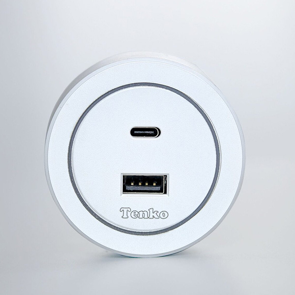 Ổ Cắm USB Và Sạc Type C Tenko TK-RU01 màu trắng là dòng ổ cắm cho thanh ray – ray trượt, giúp tiết kiệm không gian so với việc lắp đặt ổ cắm điện thông thường.